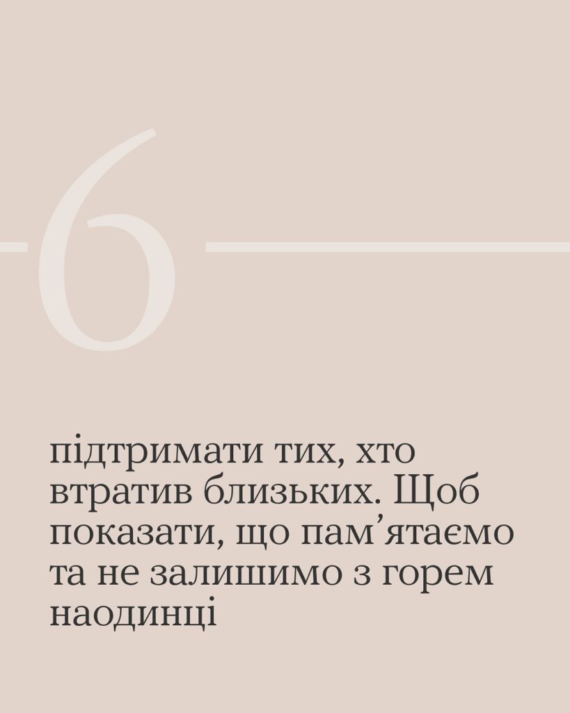 А ти зробиш одну маленьку та дуже цінну дію. Шануй себе і шануй тих, хто загинув.