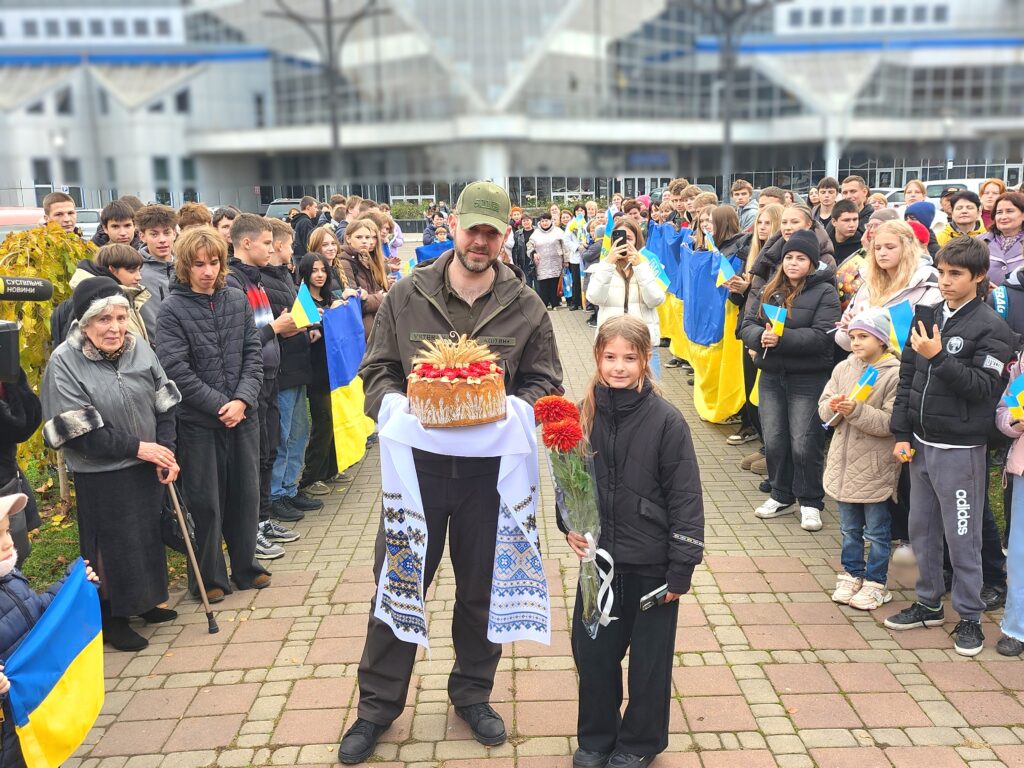 На площі біля пам’ятника Тараса Шевченка зібралися жителі, щоб гідно зустріти Героя вдома. Зустріч була наповнена теплими емоціями та патріотичним духом. Люди тримали державні прапори, квіти та патріотичну символіку, висловлюючи свою вдячність за його подвиг та стійкість.