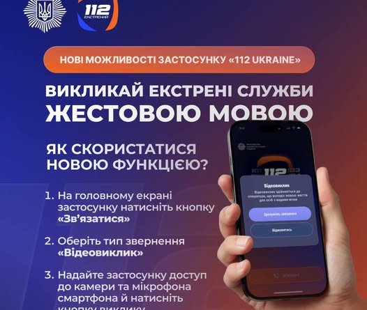 Тепер користувачі можуть здійснювати відеовиклик оператору 112, який володіє жестовою мовою. Це важливо для людей із порушеннями слуху та мовлення — вони зможуть самостійно пояснити ситуацію і попросити про допомогу.
